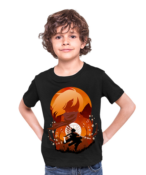 Diseño de la camiseta inspirado en la serie de manga Attack on Titan o Shingeki no Kyojin, con el personaje de Mikasa Ackerman, un personaje femenino y destacada por su labor como soldado en el Cuerpo de Exploración.