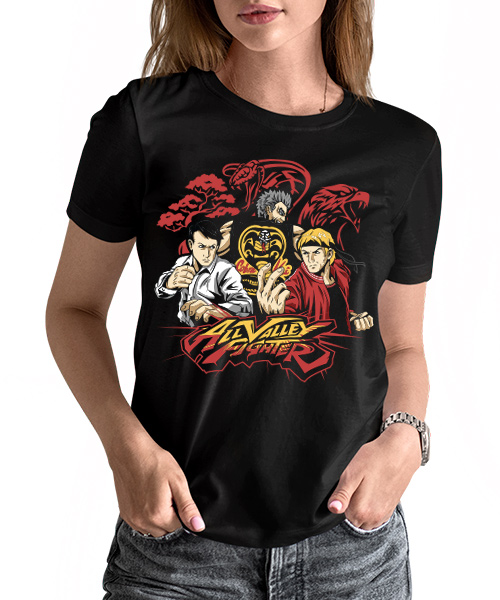 Diseño inspirado en la ilustración de la serie de televisión Cobra Kai, una comedia basada en las artes marciales y con la presencia de un combate entre Johnny Lawrence y Daniel LaRusso.