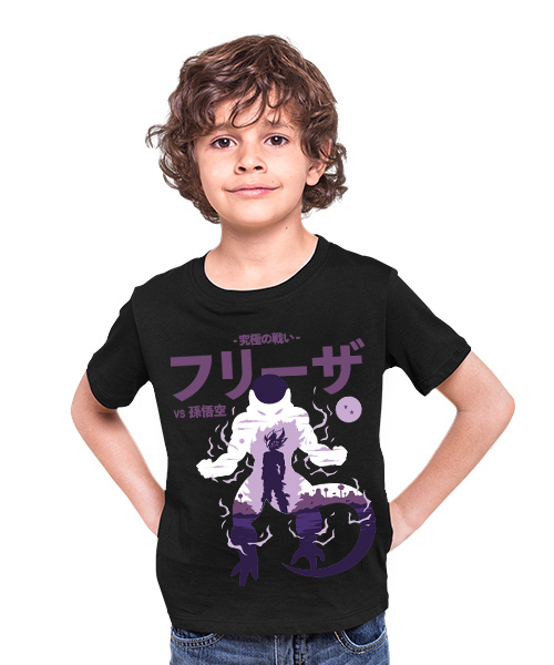 Diseño de la camiseta inspirada en Dragón Ball Z, con una épica batalla entre Freezer y el Super Saiyajin legendario, el cual aparecía cada 1.000 años y tenía más poder que un Saiyajin normal.