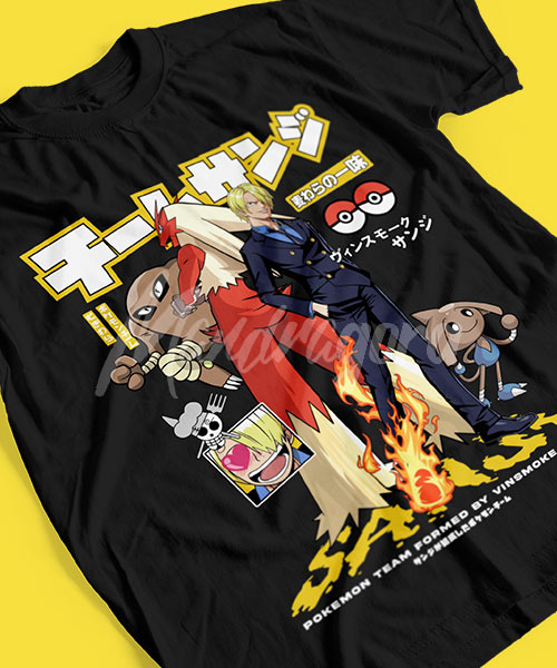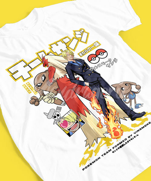 • Camiseta One Piece Vinsmoke Sanji con Pokémon.