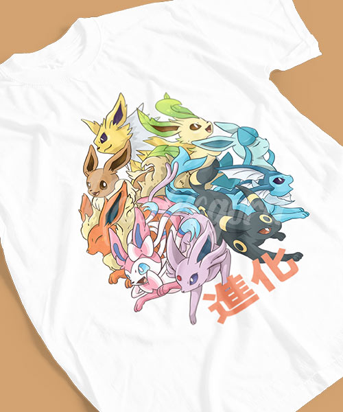 El diseño de esta camiseta está inspirado en el Pokemon #133 de nombre Eevee, el cual posee el mayor número de evoluciones con 8 y tiene similitud a un zorro.